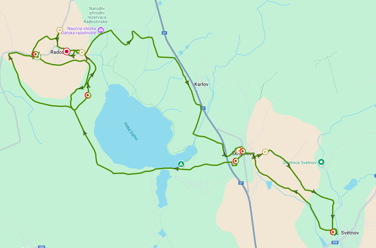 Okruh není upravován vždy dle mapy, protože většina okruhu vede v lesích, kde probíhá těžařská činnost. Proto je trasa někdy upravena jinak. Přesnou trasu stopy najdete vždy v aktualitách.